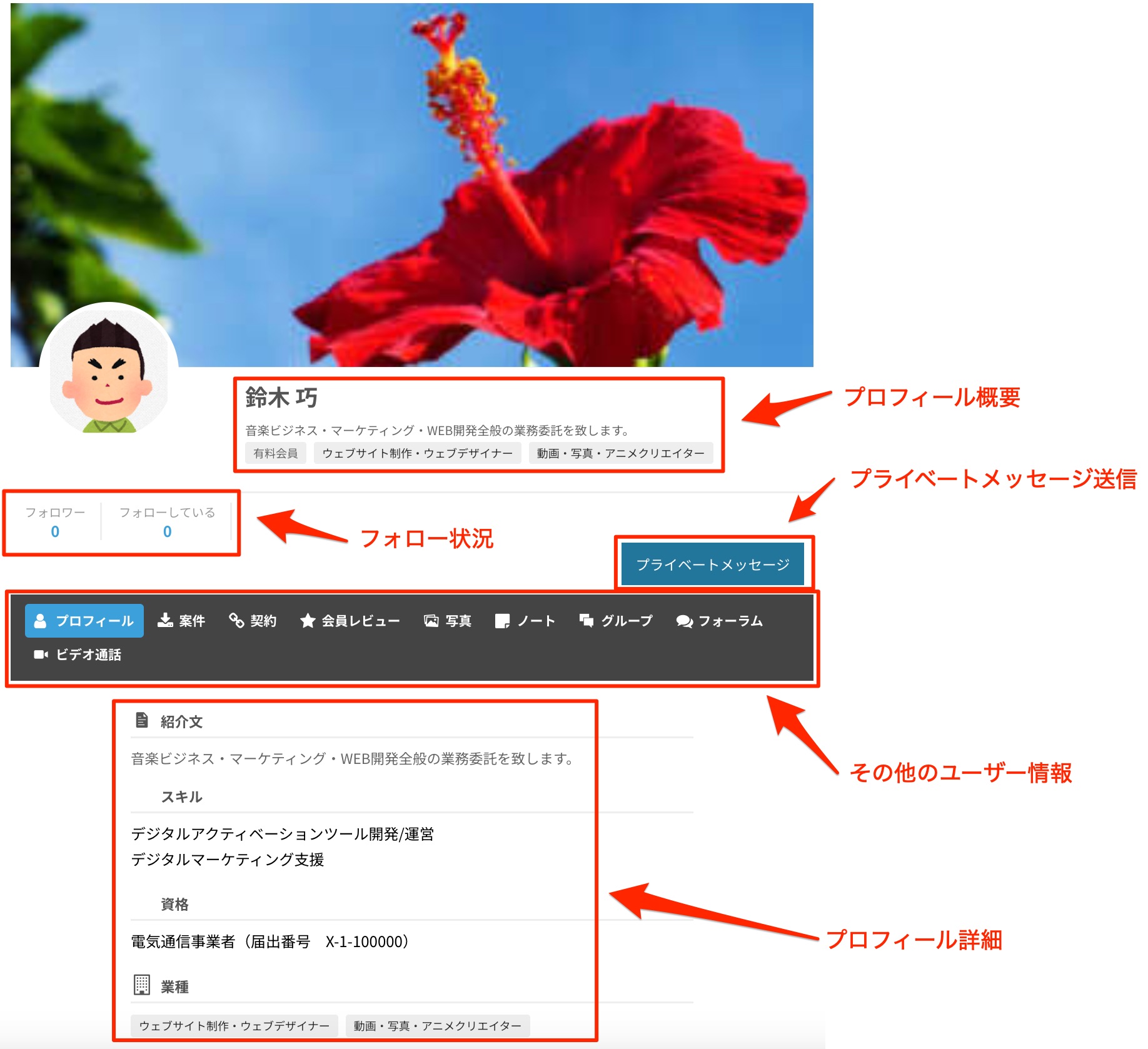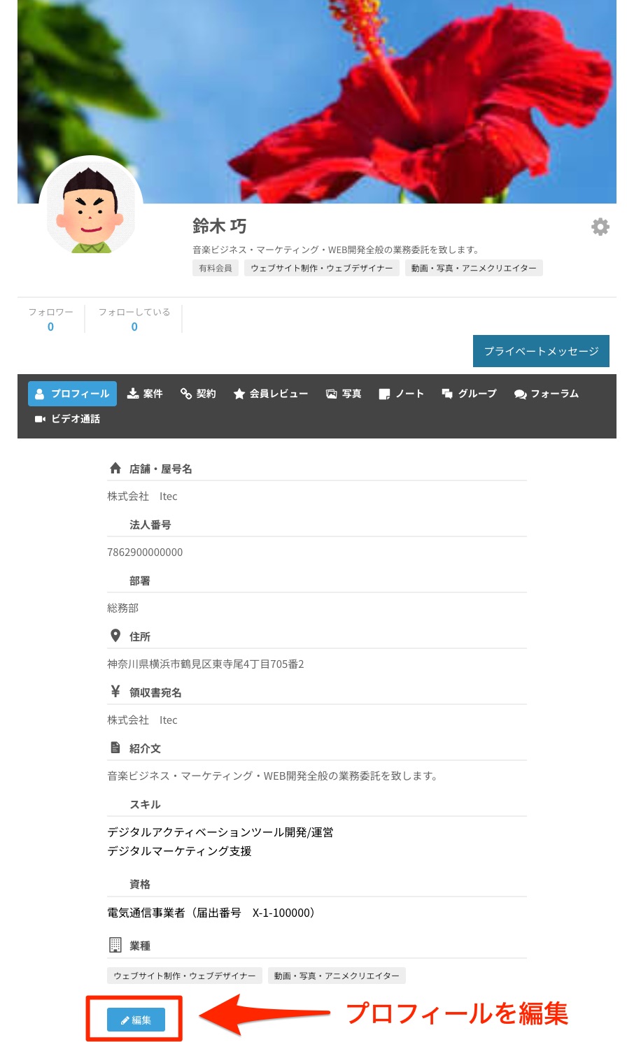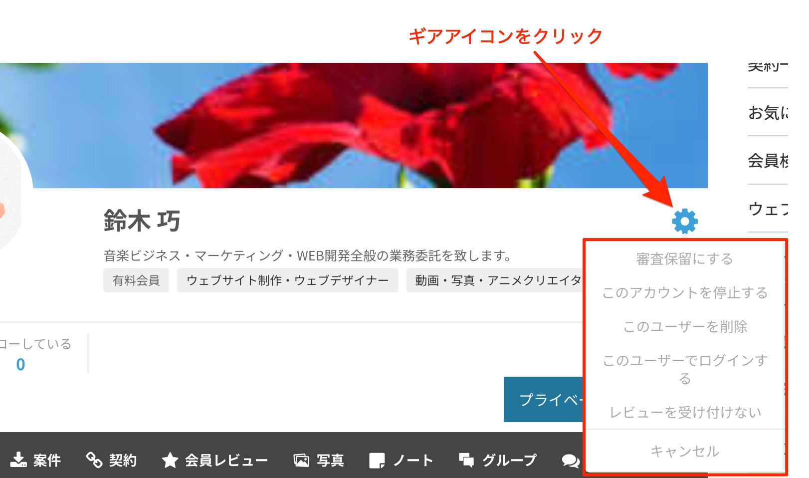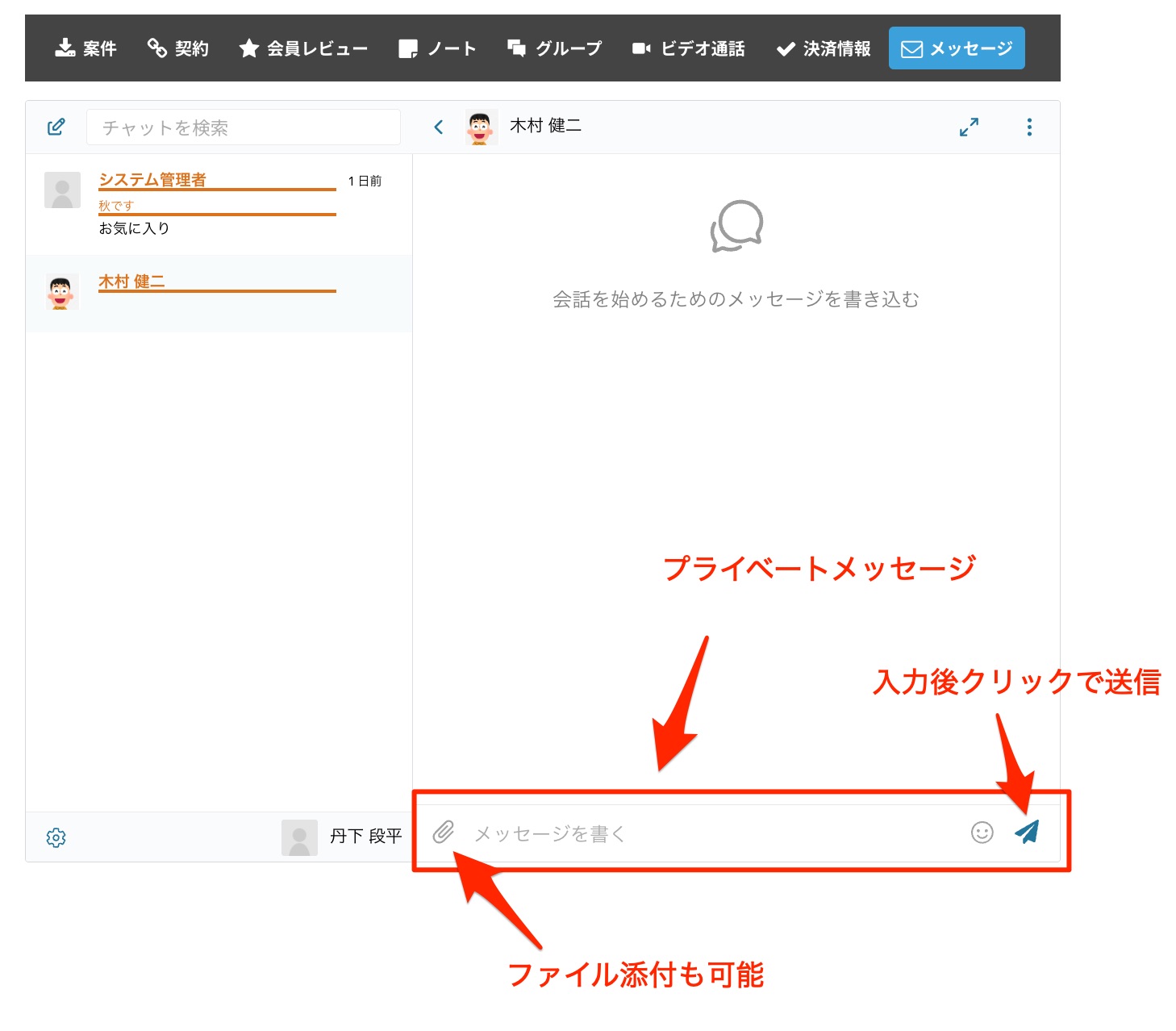 また、会員にプライベートメッセージ(ダイレクトメッセージ)を送信することができます。
